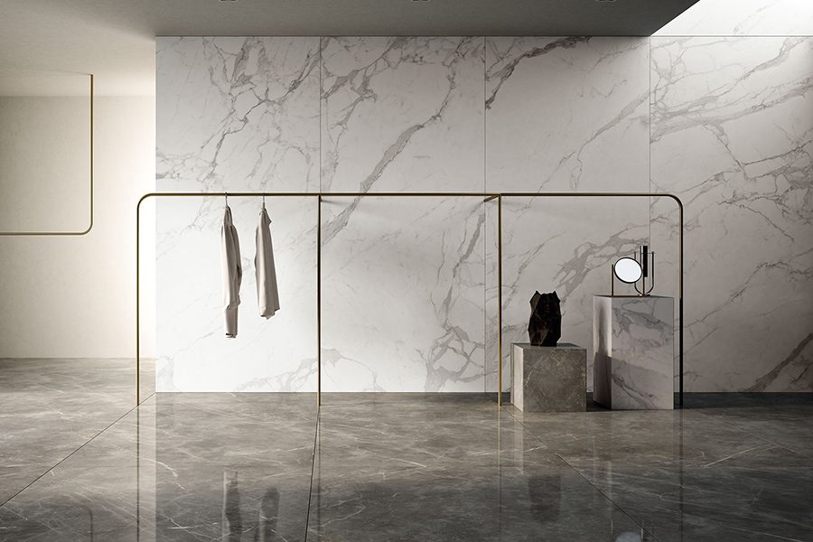Zahvaljujući velikim dimenzijama ploča, WIDEgres omogućava vizuelni kontinuitet između zidova i podova, stvarajući prostore koji deluju prostrano, skladno i arhitektonski čisto. Veliki formati ističu venature, strukture i boje materijala, pružajući snažan estetski utisak u savremenim enterijerima.