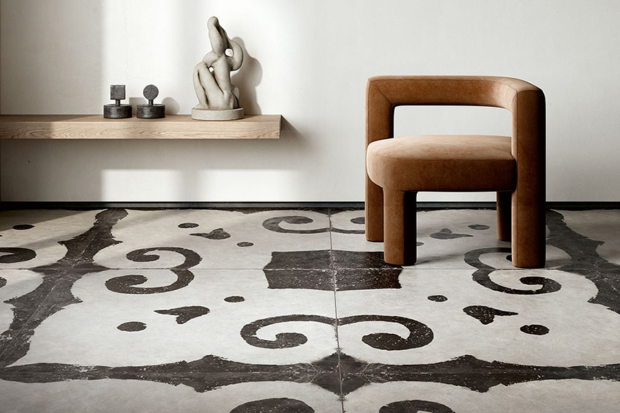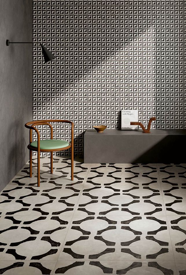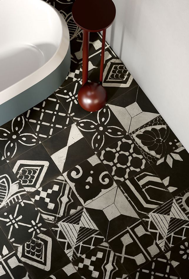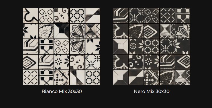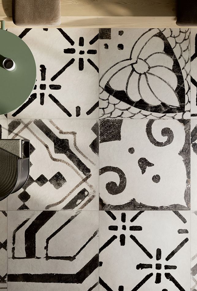 Riggiole je kolekcija granitne keramike koja donosi sofisticiran grafički izraz kroz kontrast crne i bele boje, uz suptilan efekat patine koji evocira tradiciju ručno dekorisanih pločica. Inspirisana majolikom iz oblasti Sorrento i Amalfi, kolekcija spaja prošlost i savremeni dizajn.