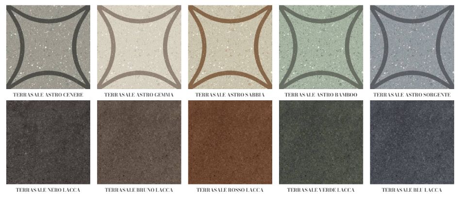 Terrasale je kolekcija granitne keramike u kompaktnom formatu 20x20 cm koja istražuje susret između različitih materijala, kultura i vizuelnih uticaja sa svih strana sveta. Kombinujući bazaltinu i belu limestone teksturu sa mat i sjajnim glazurama, ova serija donosi savremen i egzotičan pogled na tradicionalne ručno pravljene pločice. Terrasale nudi širok spektar boja i dekoracija koje se mogu slagati u strogoj mreži, slobodnom kompozicijom ili u kontrastu sa fugama, čineći je idealnim izborom za kreativna rešenja zidova i podova.