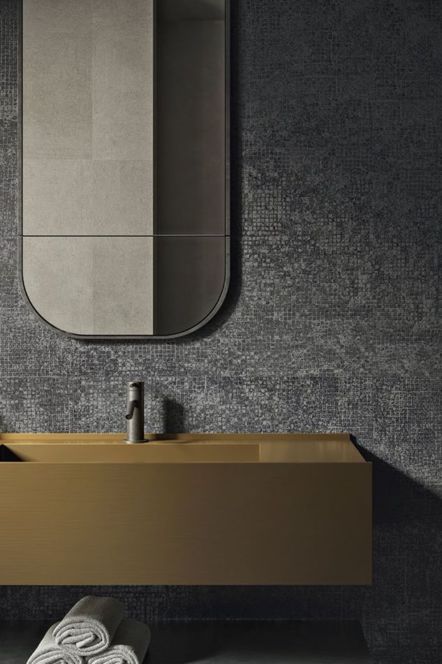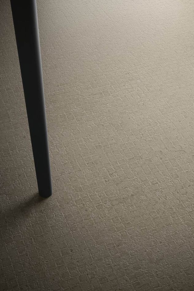 Grafika predstavlja kompoziciju sitnih mozaik tessera i sirove strukture cementa, dok Carve3D tehnologija omogućava integraciju grafike i pokreta površine, stvarajući izražen trodimenzionalni efekat, vizuelno i taktilno. Kolekcija je dostupna u tonovima Light, Pearl, Grey, Ivory i Sand, dok dekorativne varijante Strong Cotto, Strong Black, Track Cotto i Track Black donose snažan grafički identitet.