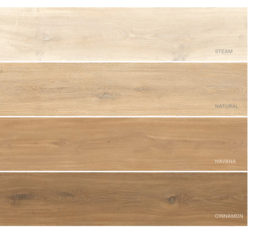 Dostupna u nijansama Steam, Natural, Havana i Cinnamon, kolekcija se lako kombinuje sa savremenim i klasičnim enterijerima. Finiš saw cut dodaje sofisticiranost, dok Tangram format unosi geometrijsku dinamiku u prostor. Zahvaljujući različitim debljinama i protivkliznim svojstvima, pogodna je za unutrašnje i spoljašnje površine.